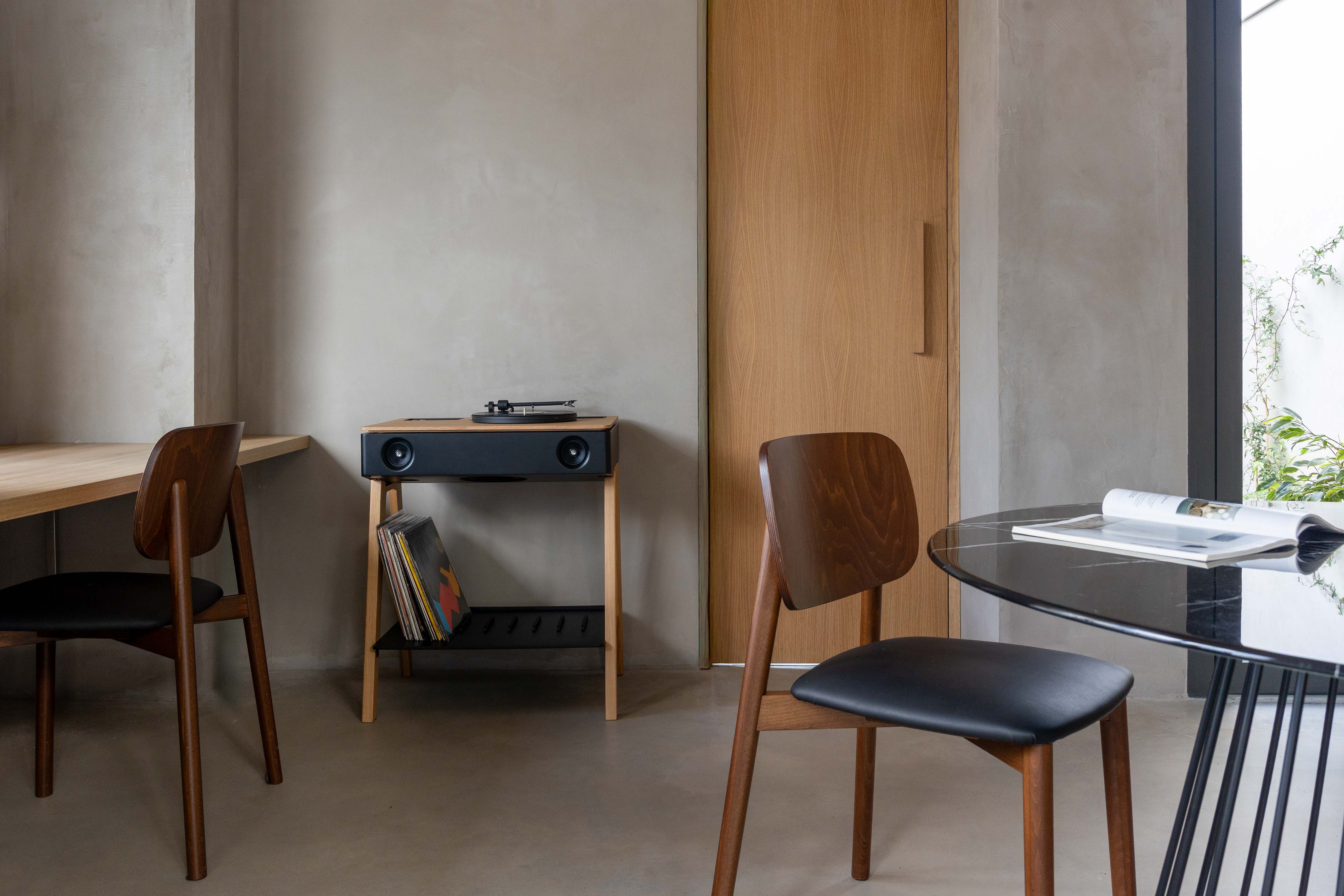 A unique "3-in-1" creation: a Bluetooth Hi-Fi speaker, an integrated turntable, and a stylish piece of furniture with a clean aesthetic. Sound worthy of a live orchestra and exceptional power, all combined in a unique audio object, conceived, tested, and assembled in Hossegor, France. The LX Turntable Chêne stands out as a striking centerpiece in your home.